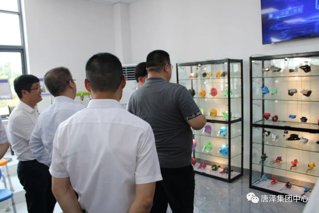 ▲ 市各級領(lǐng)導一行參觀(guān)制動(dòng)器產(chǎn)品及養老產(chǎn)品展示區